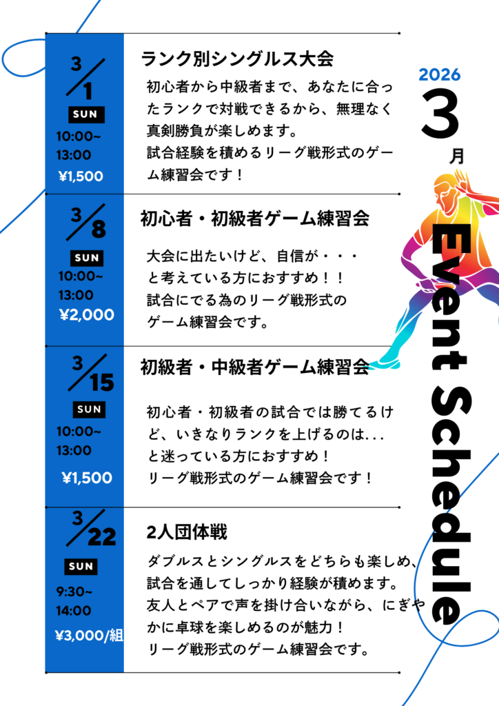 そんな初心者・初級者の方にぴったりの3月イベントスケジュールが完成しました✨